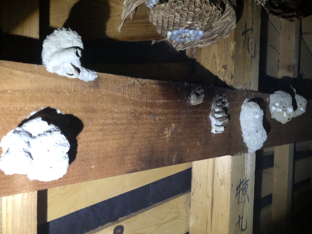 ドロバチはアシナガバチ、スズメバチ、ミツバチと比べると馴染み薄いかもしれません。巣も泥で塗り固められてユニークです。主な場所は外壁、屋根裏などです。1個だけの時もありますが、複数にわたって作られることも珍しくなく、屋根裏などでは鈴なり状態... -