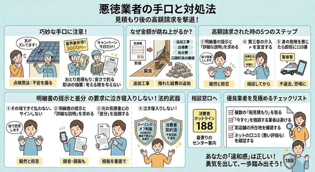 まずは敵を知ることから始めましょう。悪徳業者は、消費者の「無知」と「不安」を巧みに利用します。